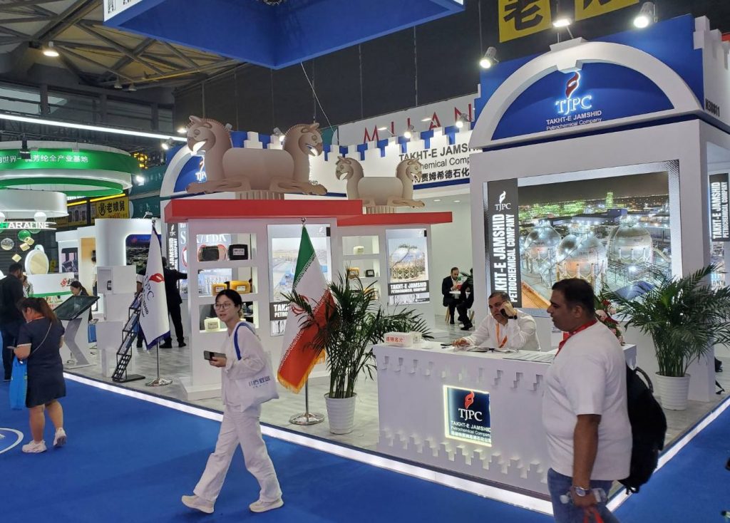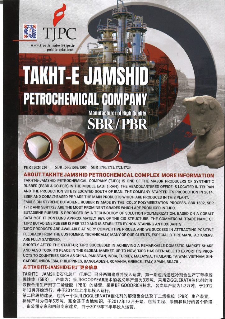 2025年9月の中国 RUBBER TECH CHINA2025展示会にてイランの合成ゴム会社 Takht-e- Jamshid Petrochemical社のブース。SBR,BRのサンプル展示あり。