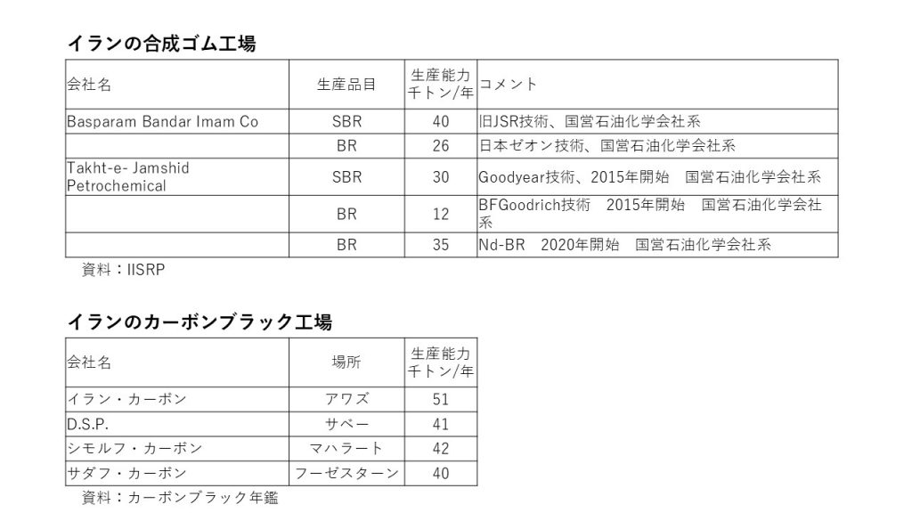 これらのイランのゴム材料は、日本では使用されていません。これらはインド、中国、ロシアには輸出されていると聞いてます。中国のSBR.BR工場はまだまだ生産能力に余力がありますから、このイランの合成ゴム輸出が止まっても世界の合成ゴム需給には関係ないと思います。